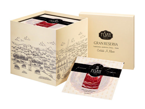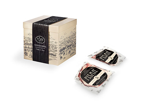 FISAN高级美食系列伊比利亚橡果喂养前腿带有独特香气和新鲜的风味。它的鲜艳色泽和浓烈香气将我们带到FISAN的天然风干室,在那里这些前腿,放置珍藏了三年以上,因此,恰到好处的盐分能使最挑剔的味蕾都达到愉悦。它的秘密在于原材料的选择,工作人员的精心照料和在天然风干室中的储存,这些因素造就了,让品尝者难以忘怀的顶级橡子喂养前腿。只有这样品质的产品才被归类为高级美食。